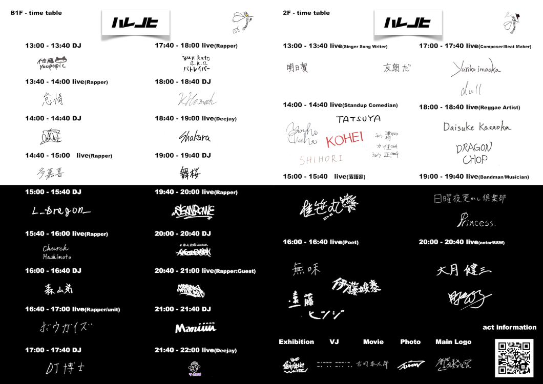 詩人、バンド、シンガーソングライター、ビートメイカー、レゲエアーティスト、ラッパー、スタンダップコメディアン、落語家、俳優などによるライブ。粋なDJたちによる音楽、ホッと一息できるフードなど、あり。