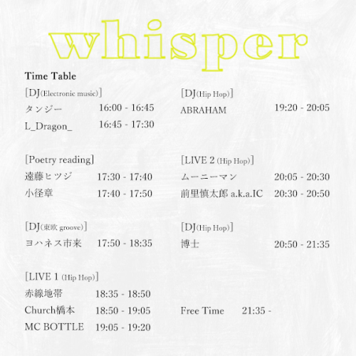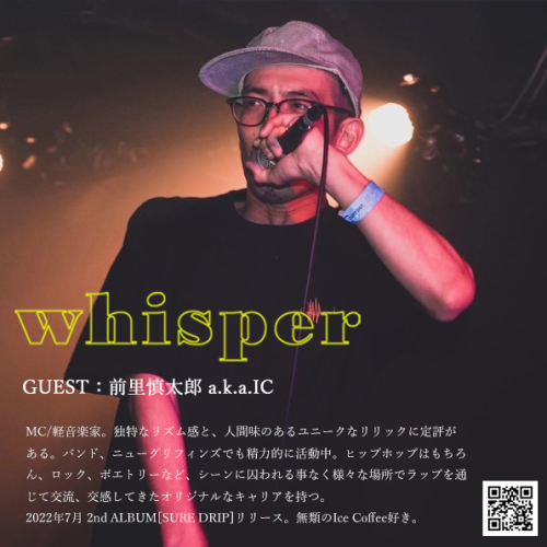 MC/軽音楽家。独特なリズム感と、人間味のあるユニークなリリックに定評がある。バンド、ニューグリフィンズでも精力的に活動中。ヒップホップはもちろん、ロック、ポエトリーなど、シーンに囚われる事なく様々な場所でラップを通じて交流、交感してきたオリジナルなキャリアを持つ。2022年7月 2nd ALBUM[SURE DRIP]リリース。無類のIce Coffee好き。